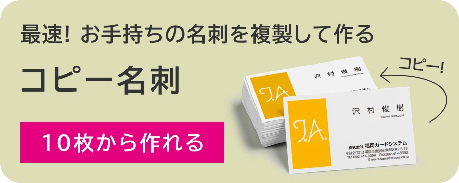 お客様がお持ちの名刺をコピーして増刷するプランです。原稿となる名刺を1枚以上お持込みください。