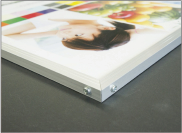 パネルと透明なフィルムの間にポスター等を挟み、アルミフレームで固定します。