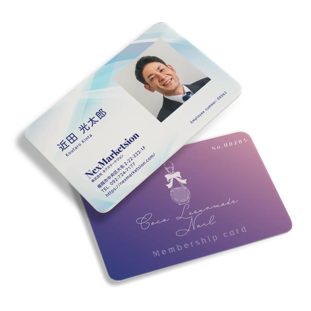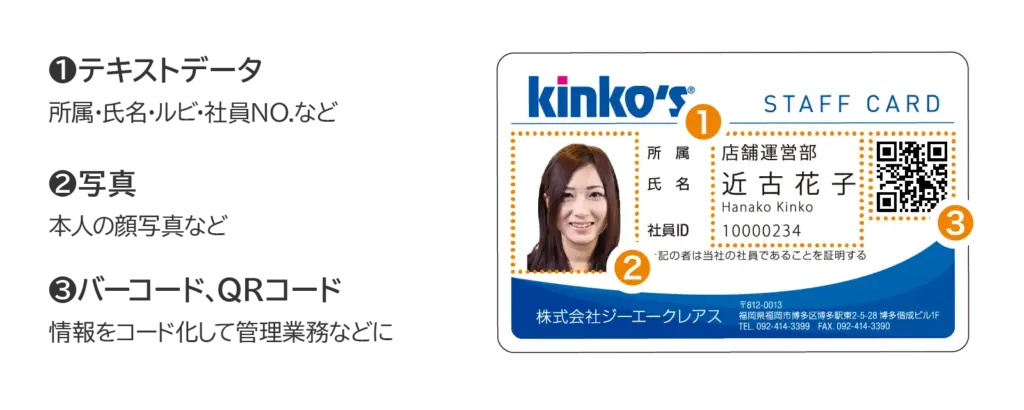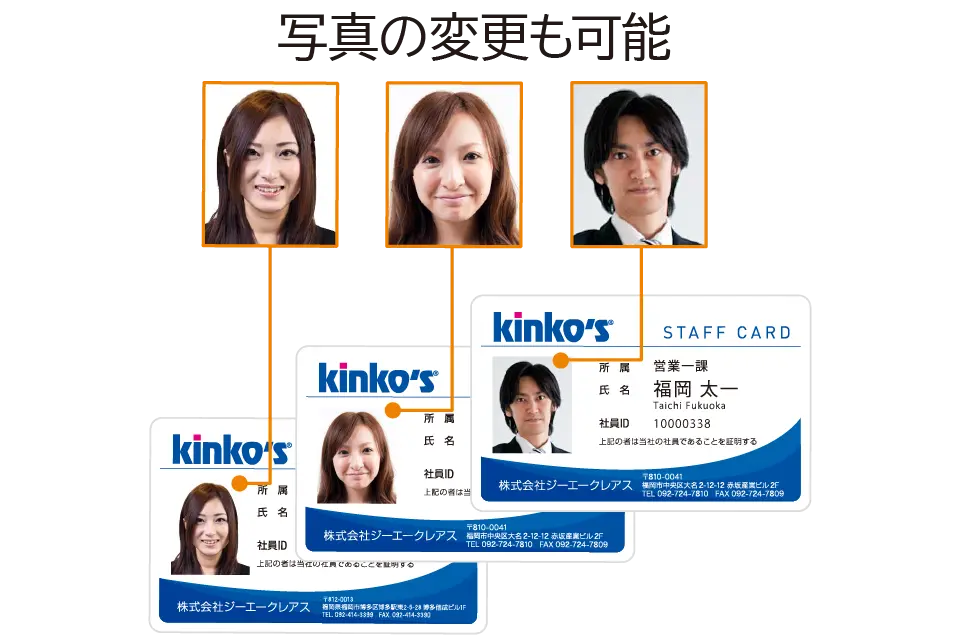キンコーズのプラスチックカードなら1枚毎に内容が変わるバリアブル印刷にも対応!社員証や会員証、IDカードなどにお勧めです!