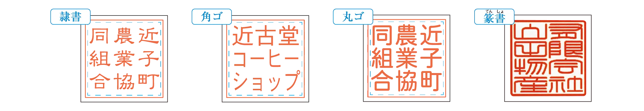 ※角印には枠線が入ります。※点線が文字内容範囲になります。
