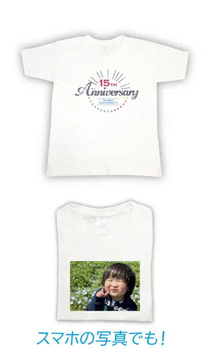 写真やイラスト、ロゴなどを使ってオリジナルTシャツをお手頃価格で1枚から作成できます。 自分用にはもちろん、記念品やプレゼント、イベントで大人数で着用にもおすすめです。