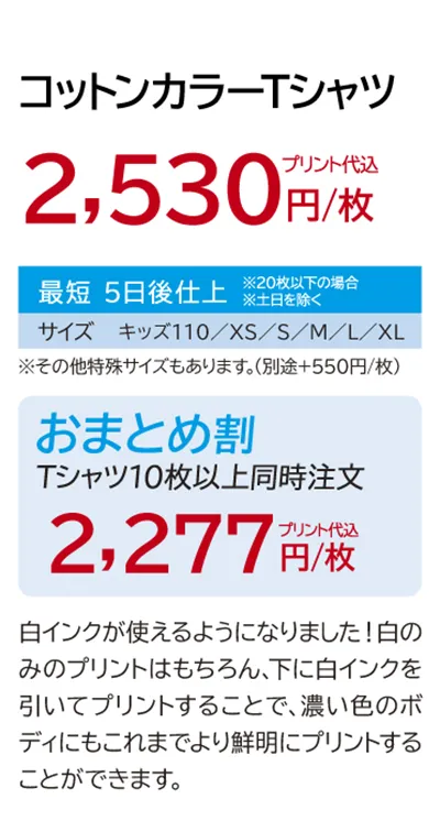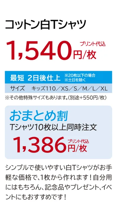 最短2日(福岡市外は最短24時間)でオリジナルTシャツの完成!