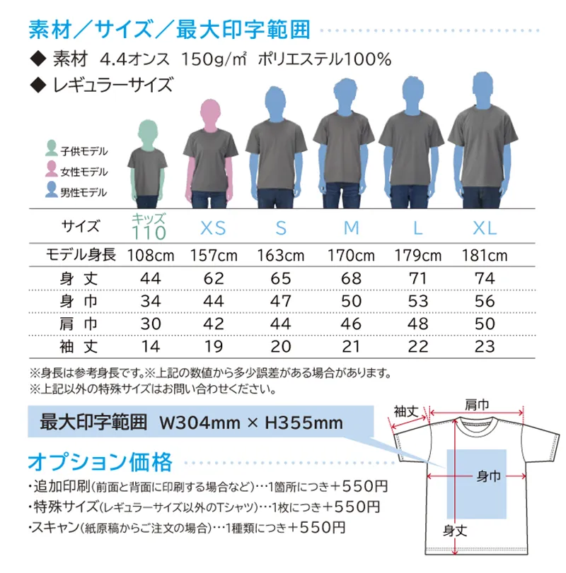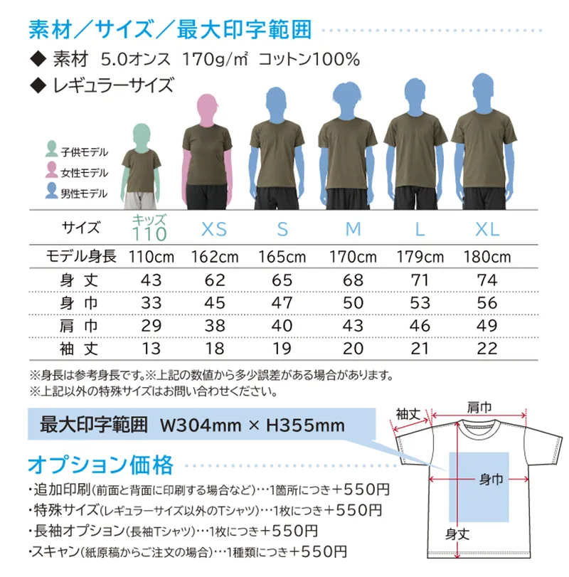 特殊サイズ(レギュラーサイズ以外のTシャツ)¥550