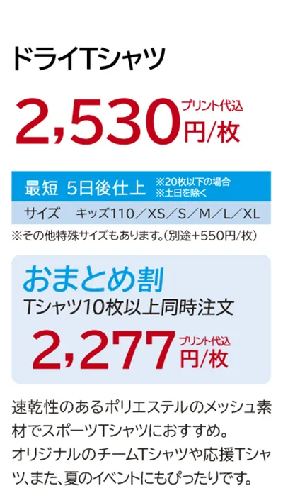 ドライTシャツ¥2,530¥2,277