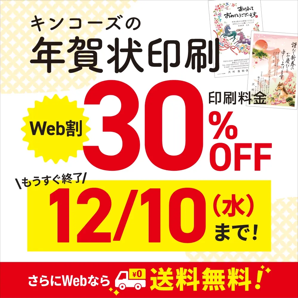 【まもなく終了】年賀状印刷 Web早割30%OFF(12/10まで)