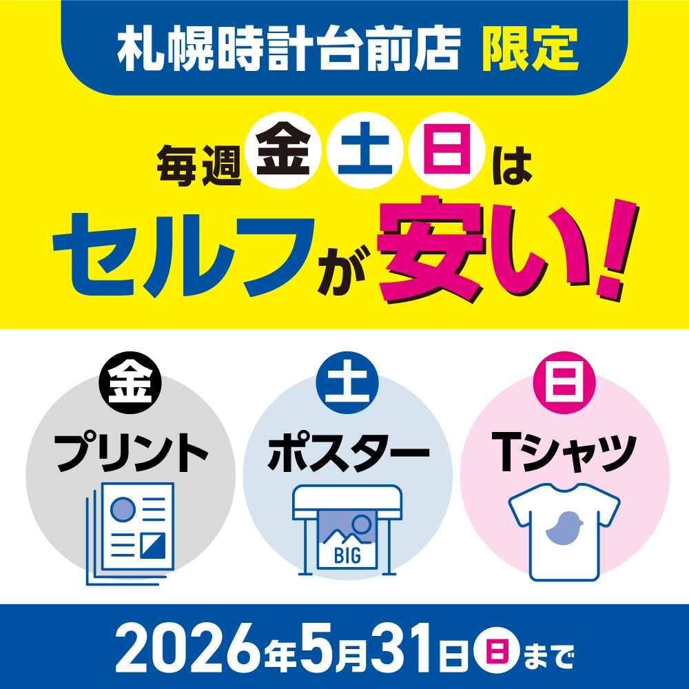 札幌時計台前店限定!金・土・日はセルフプリントが安い!